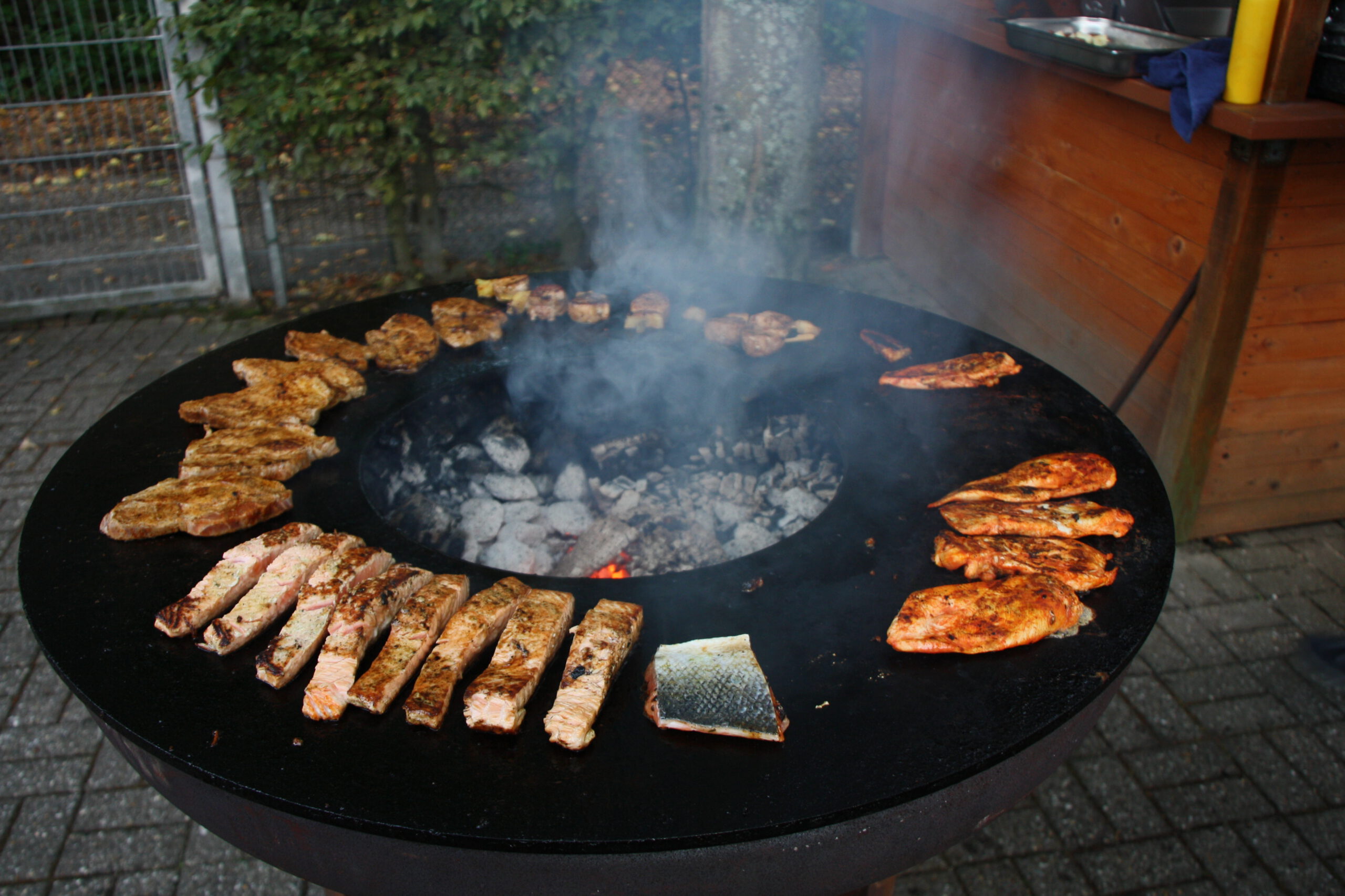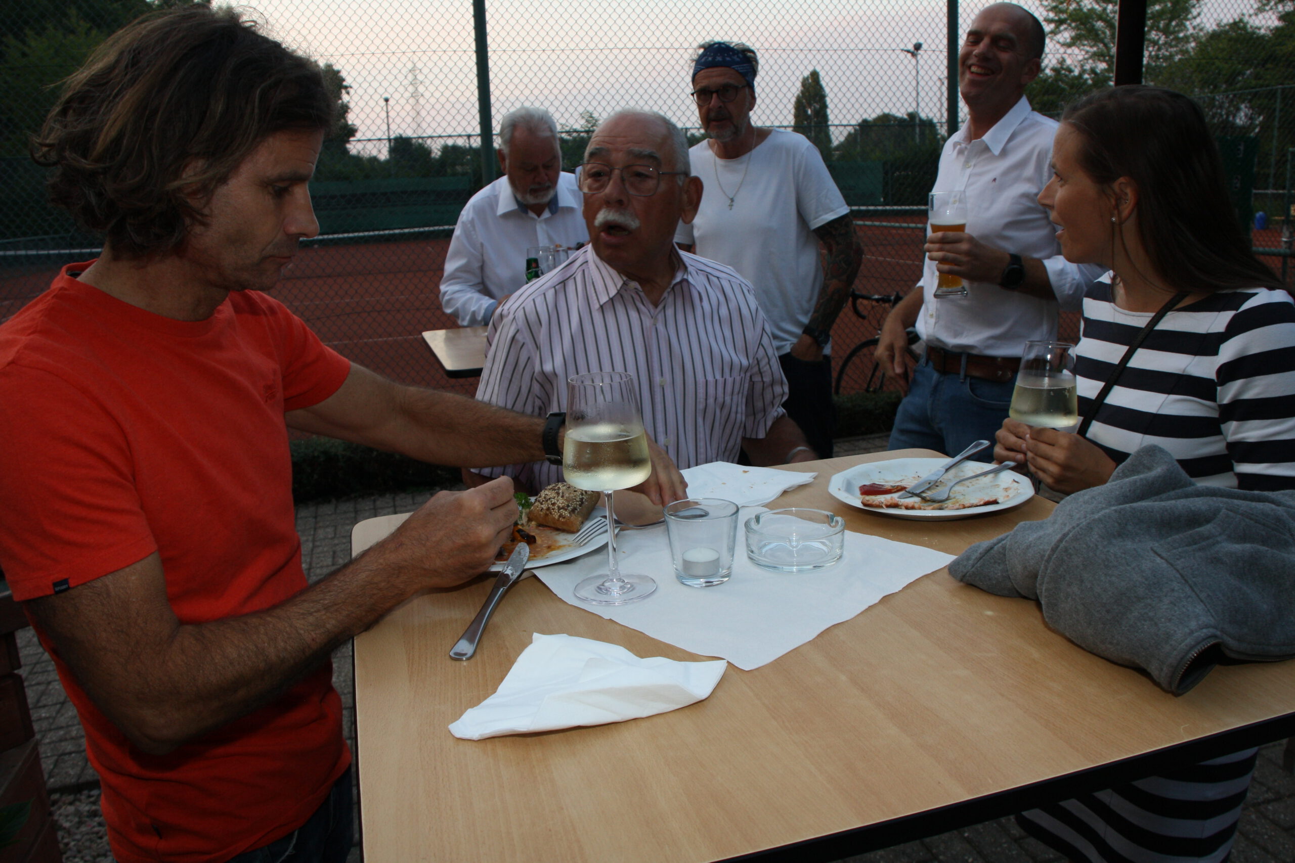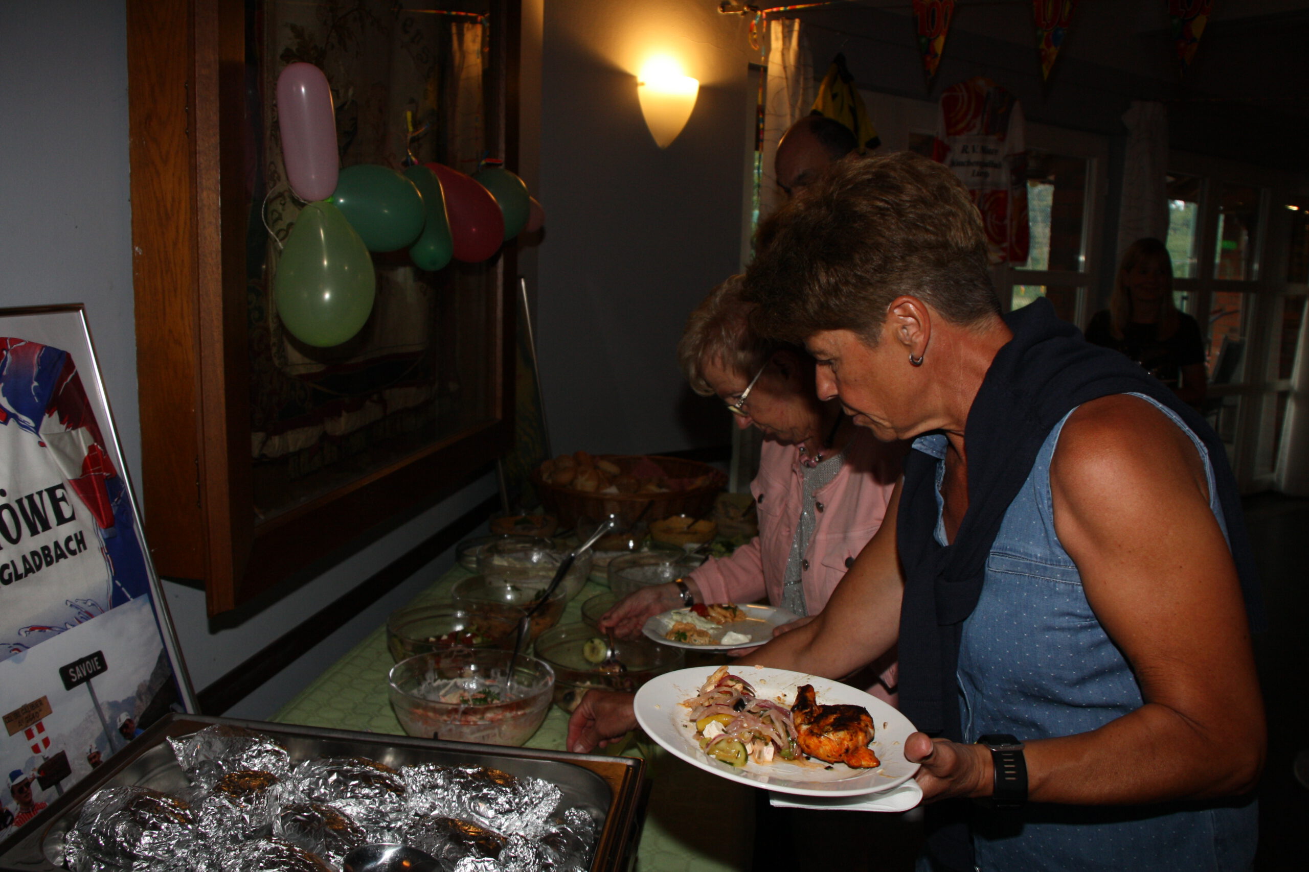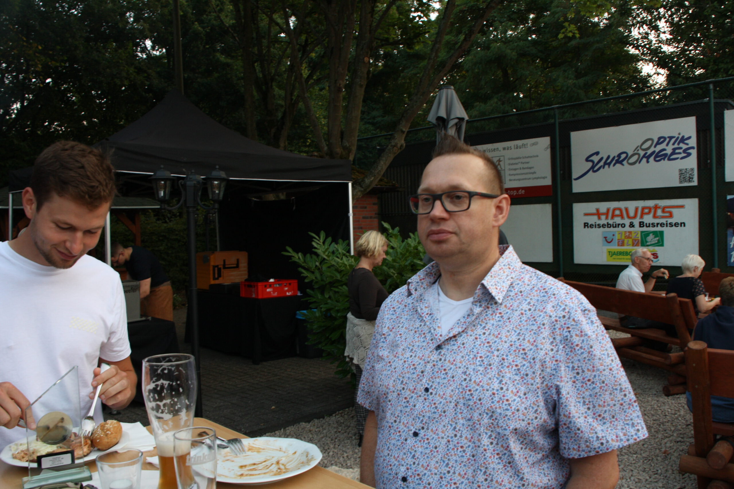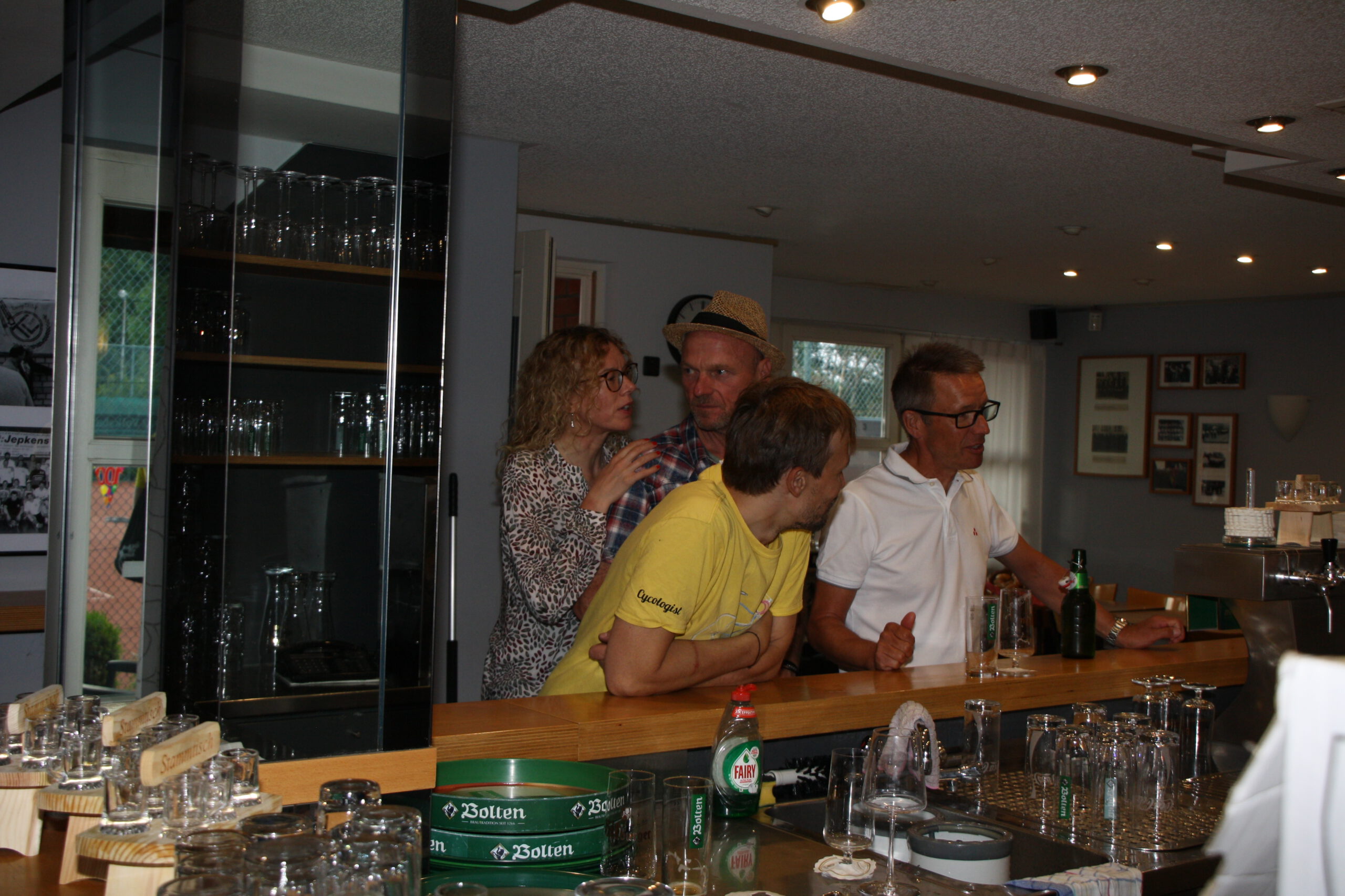 Baumanns Catering komplettierte den Biergarten mit einer sehenswerten Grillstation, die am Abend mit Fisch, Fleisch und vegetarischen Köstlichkeiten bestückt war. Um 19.30 Uhr konnten wir unsere Gäste begrüßen, Günter Dauven vom Radsportbezirk Mönchengladbach und Dieter Kauerz vom Stadtsportbund, Frank Günther von den Grenzfahrern, unsere Sponsoren Angelika Schmilewski und Dieter Schon von bikefriends-schon, Familie Sören Sauer vom thebikeshop.de.