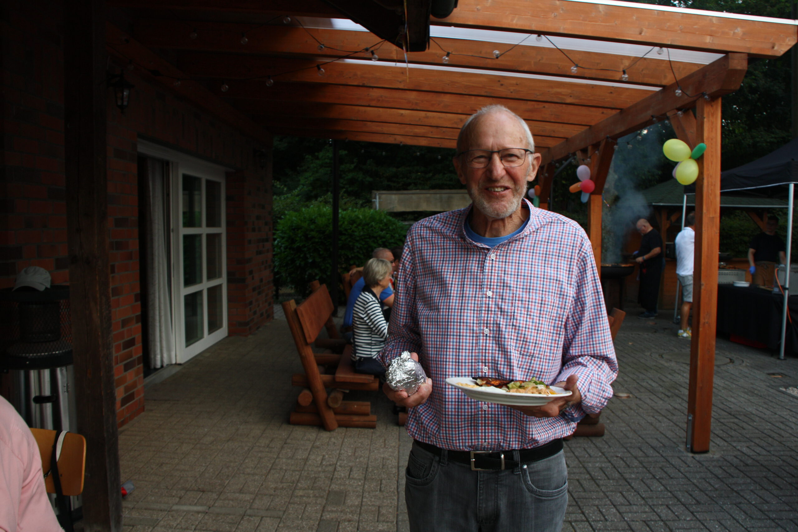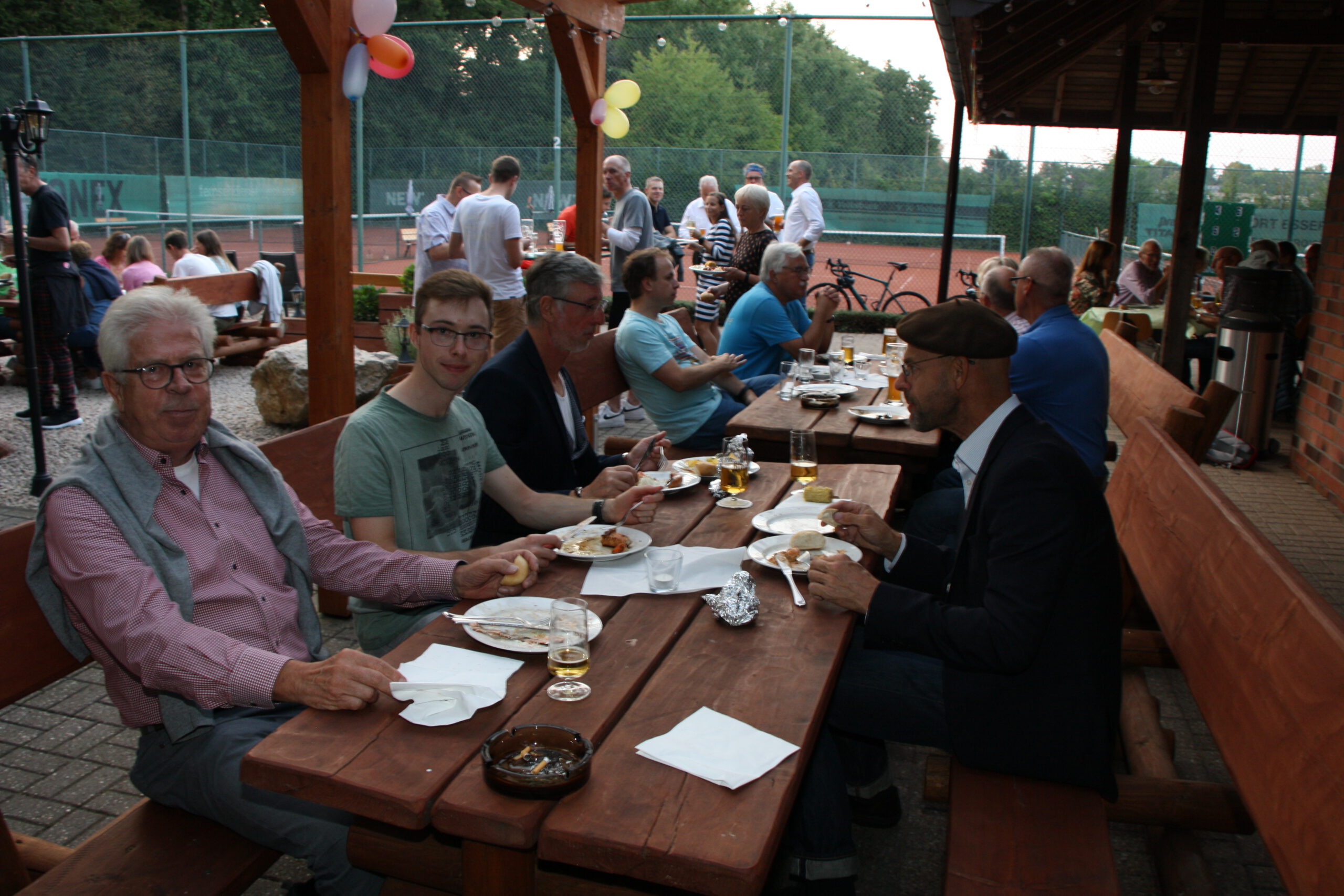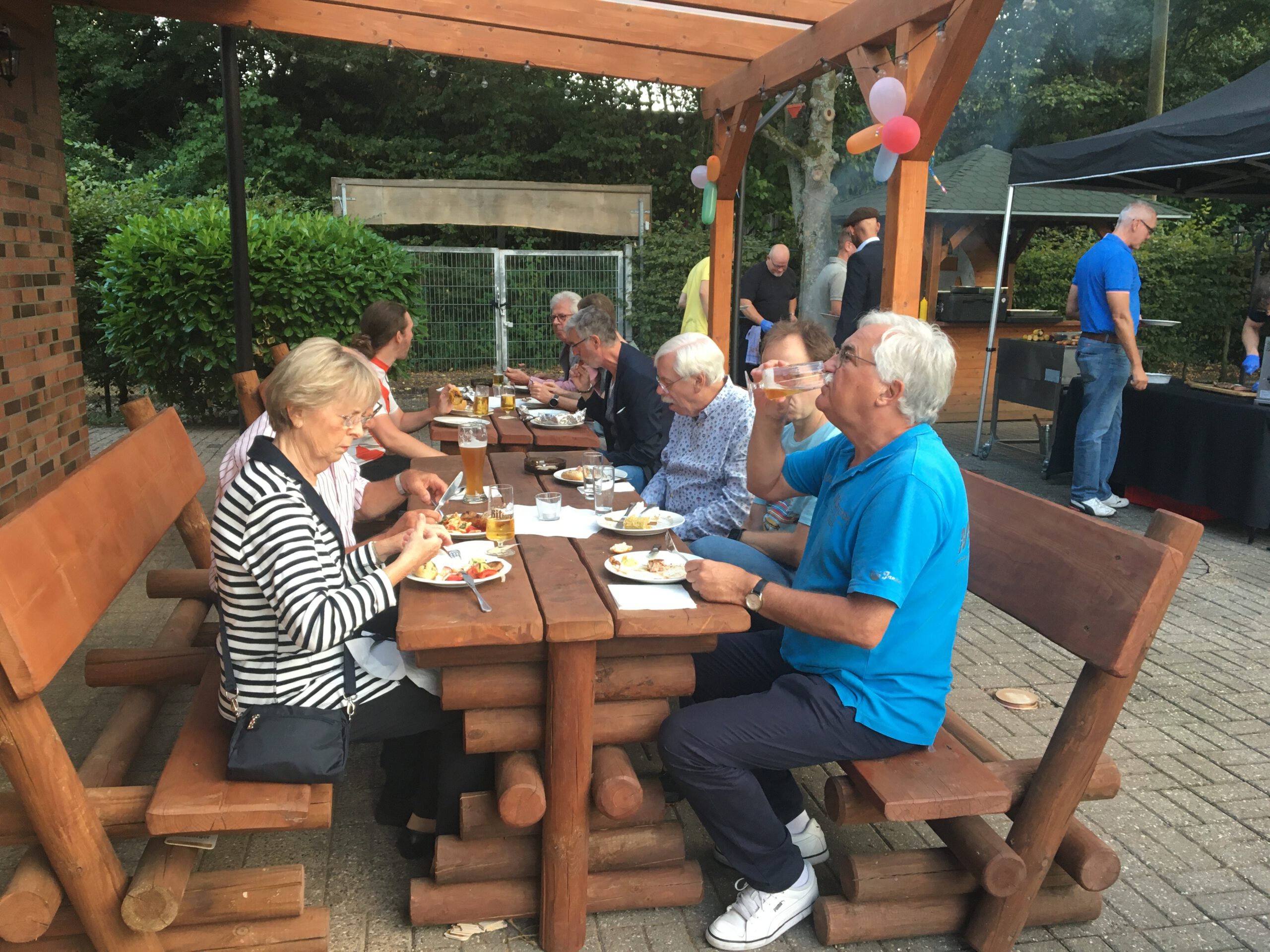 Danach war die Festgesellschaft kaum noch zu bremsen, da der Geruch von Gegrilltem die Nase angenehm reizte. Das Grillbuffet wurde eröffnet. Der Abend war für viele ein Wiedersehen nach langer Coronapause und selbst ich musste den einen oder anderen Helmlosen nach dem Namen fragen. Dieter Kauerz hielt nach dem Buffet eine kurze Rede. Am frühen Sonntag endete die Feier und Sonntagmorgen waren wieder ein paar hartgesottene unterwegs zum „Kilometerfressen“ oder „Kalorienverbrennen“.