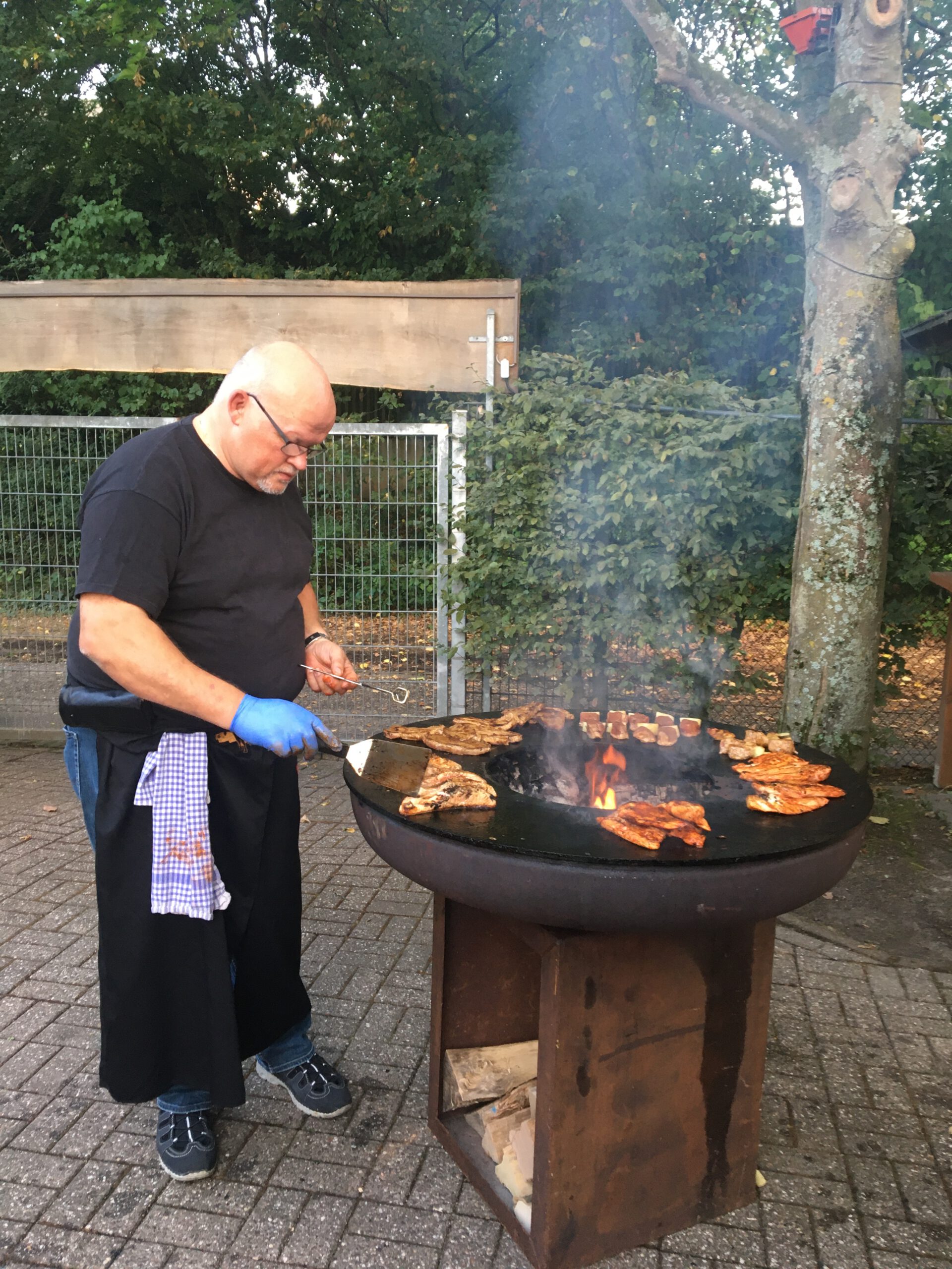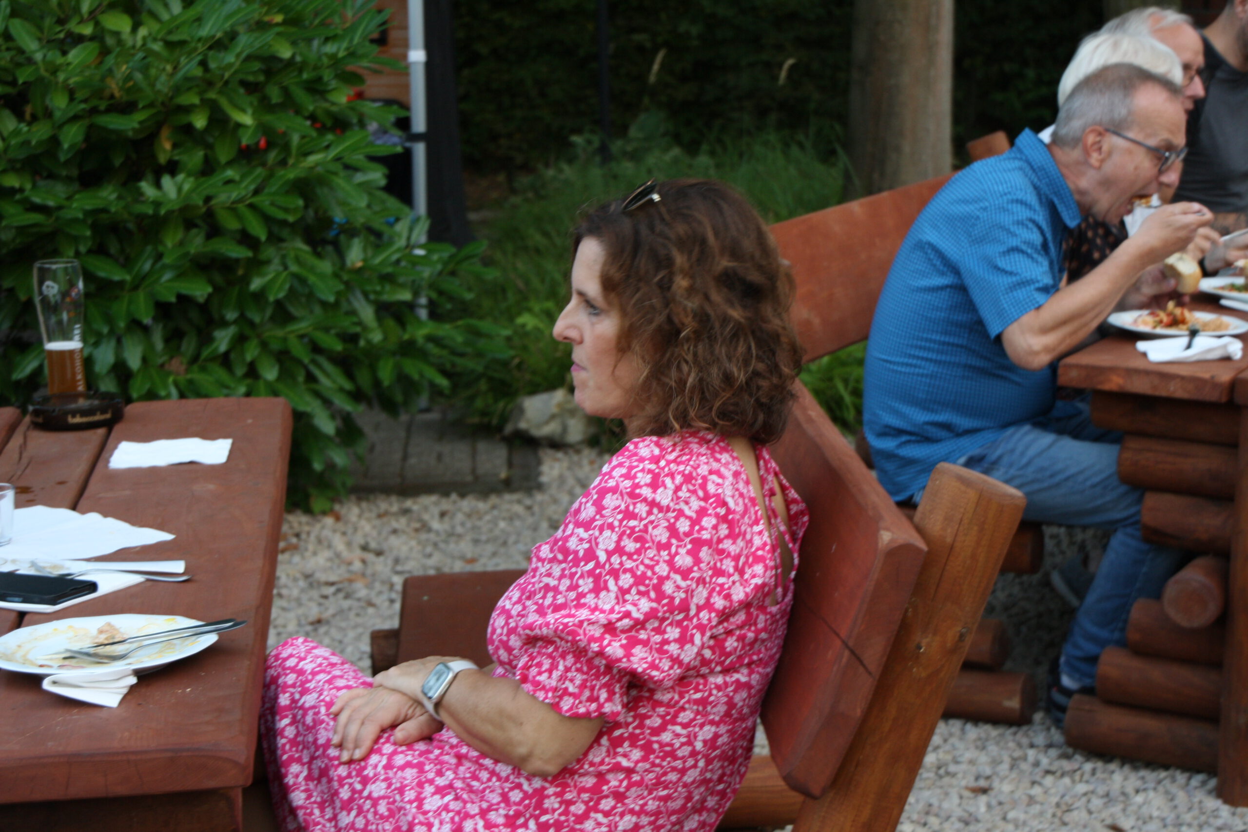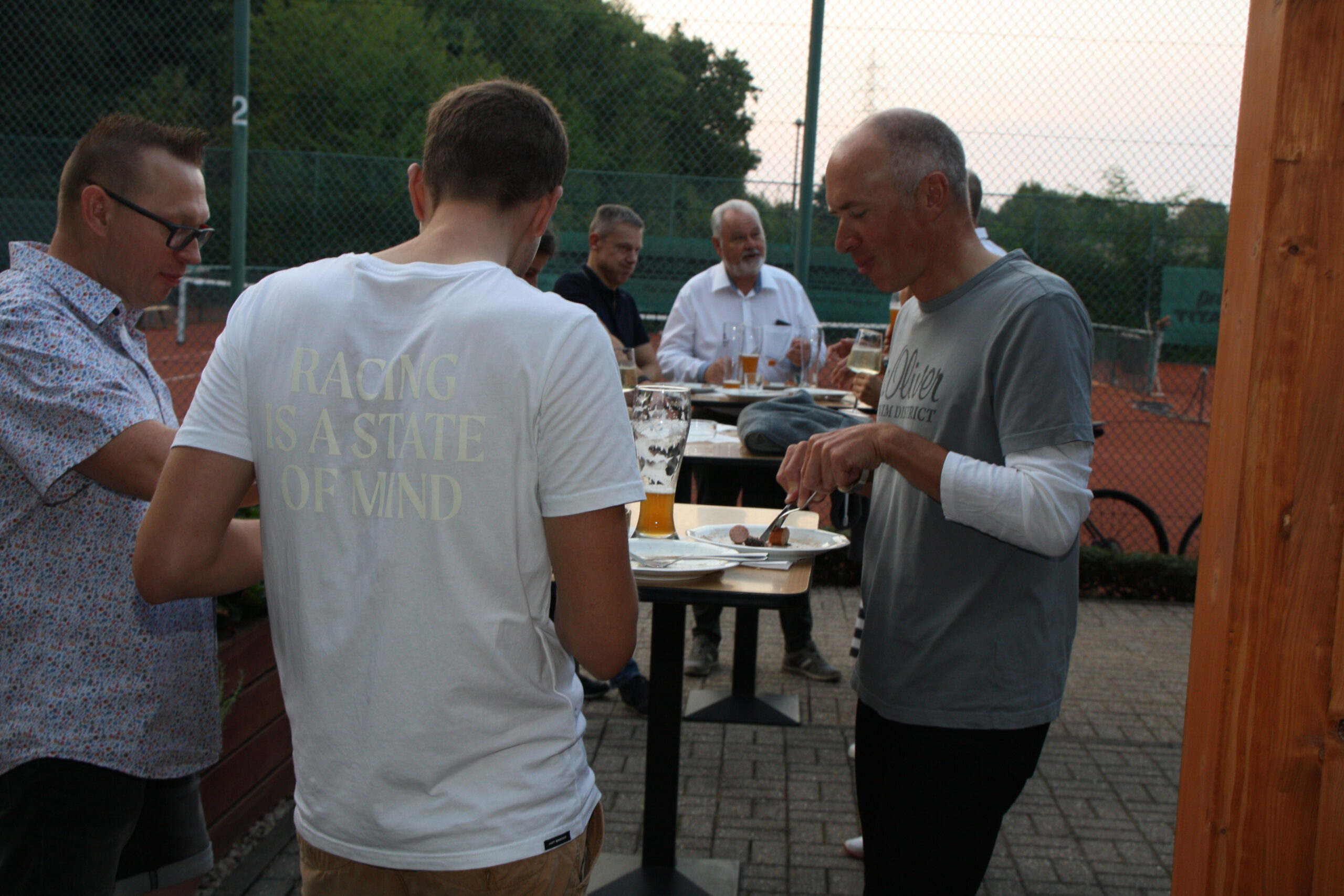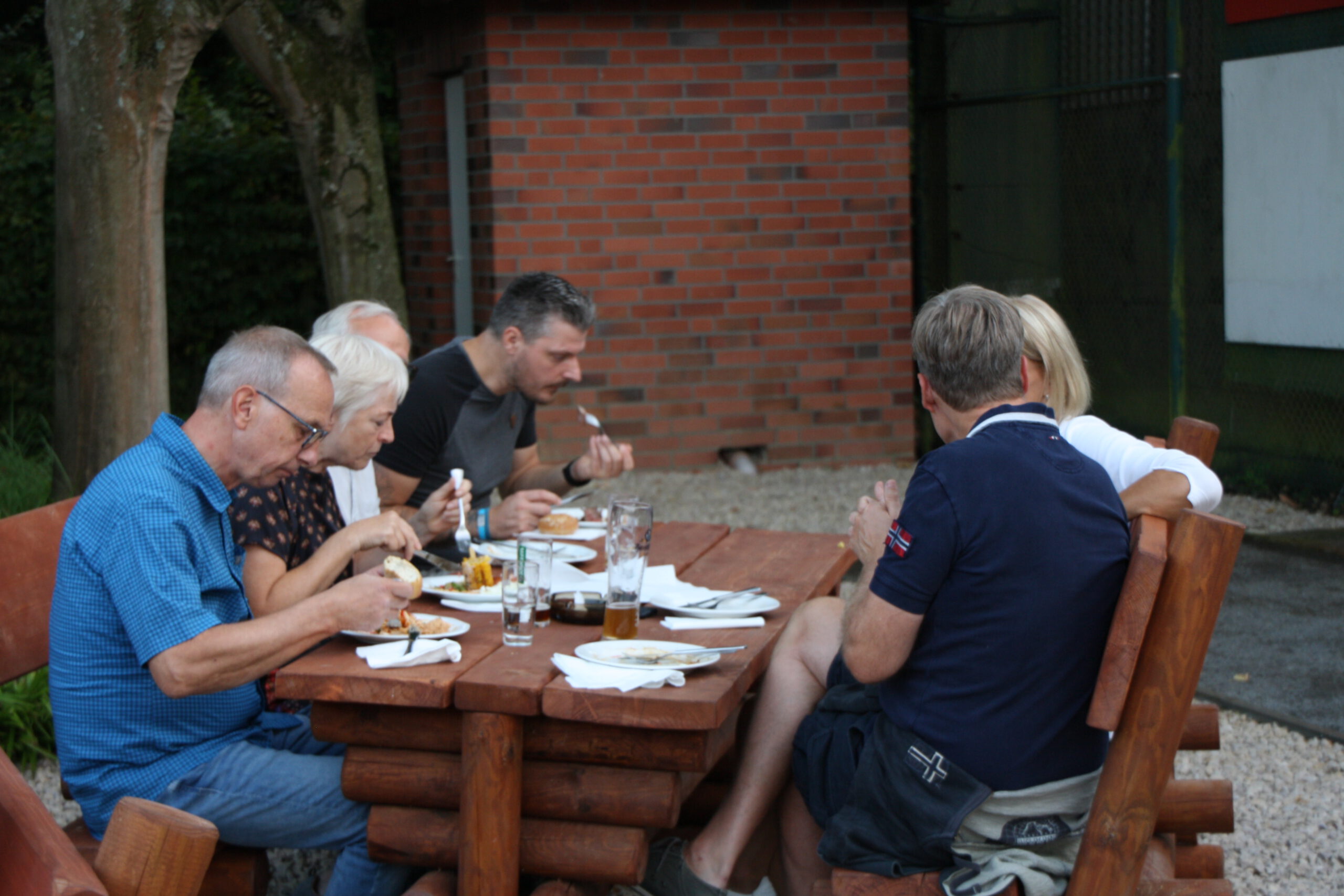 Danach war die Festgesellschaft kaum noch zu bremsen, da der Geruch von Gegrilltem die Nase angenehm reizte. Das Grillbuffet wurde eröffnet. Der Abend war für viele ein Wiedersehen nach langer Coronapause und selbst ich musste den einen oder anderen Helmlosen nach dem Namen fragen. Dieter Kauerz hielt nach dem Buffet eine kurze Rede. Am frühen Sonntag endete die Feier und Sonntagmorgen waren wieder ein paar hartgesottene unterwegs zum „Kilometerfressen“ oder „Kalorienverbrennen“.